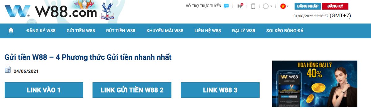 Cách vào w88 nhanh nhất là truy cập vào site w88hn1.vip, bấm vào link w88