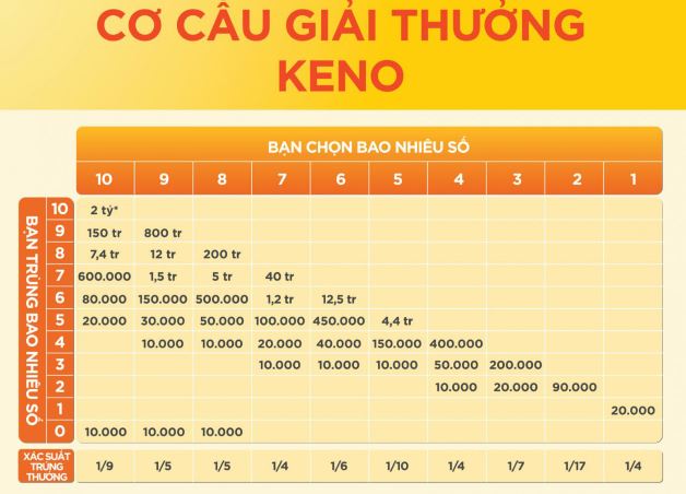 Với nhiều lợi thế, chẳng hạn như tính linh hoạt của việc chơi. tỷ lệ chiến thắng cao đang trở thành một xổ số phổ biến. Tham gia để đặt cược vào vé Keno, chỉ với 10.000 VND cho 1 vé. Người chơi vẫn có cơ hội giành được tới 2 tỷ người theo người chơi dài hạn. Công thức tính keno là chính xác trong tính toán có tỉ lệ cao trong chiến thắng